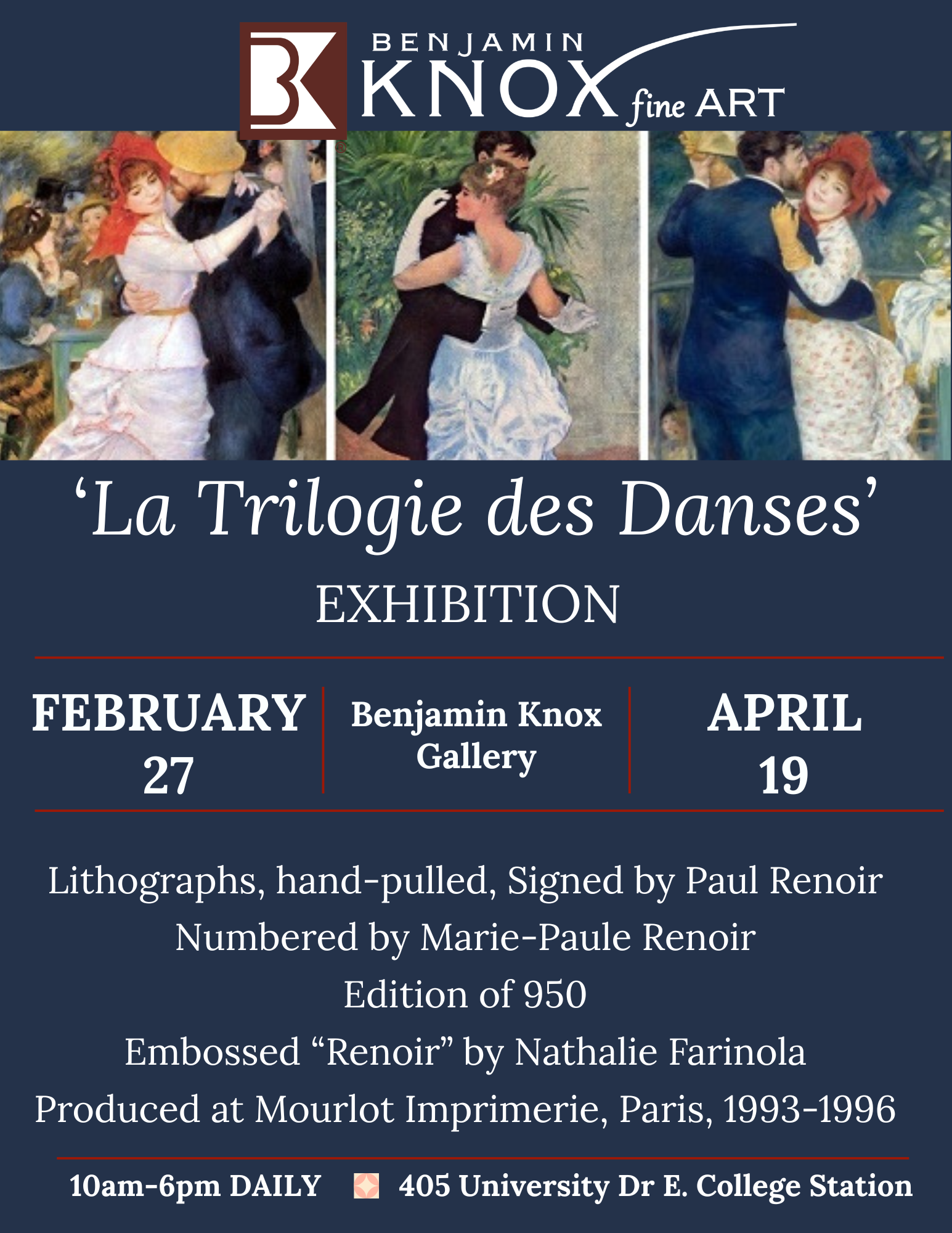 learn moreEXTENDED! We invite you to visit Benjamin Knox Gallery and view artwork by Pierre-Auguste Renoir, along with personal family photographs.